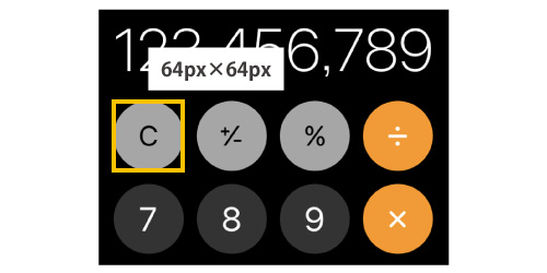 iPhoneの電卓機能の各ボタンがそのサイズ(約64px×64px)に近いので、ぜひこのサイズ感で設計してみてください。